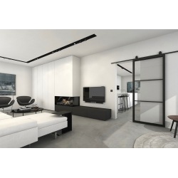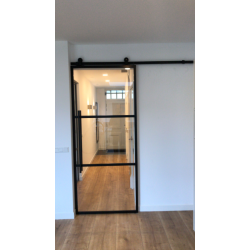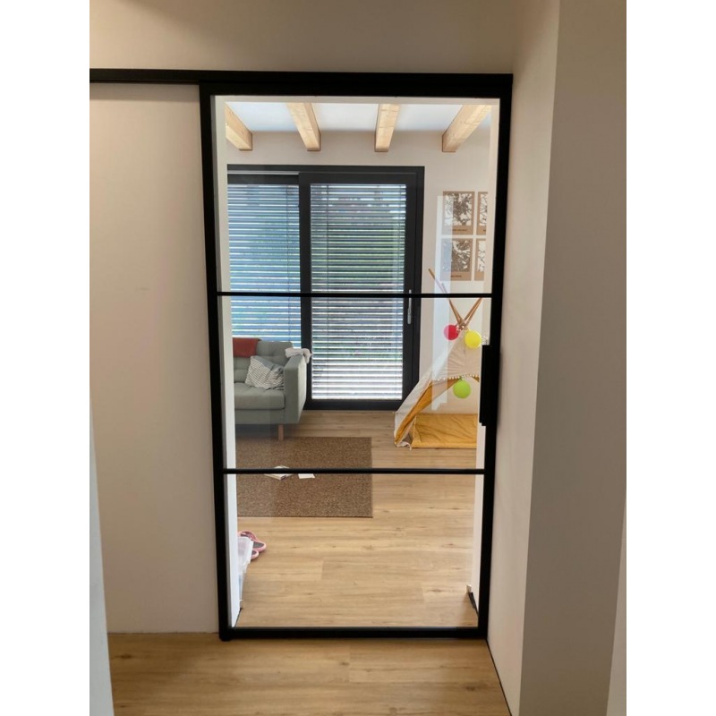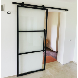 Metal industrial sliding door with 3D glass