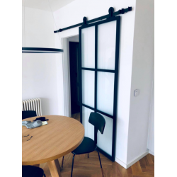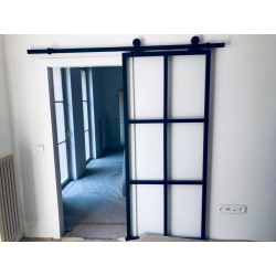 you can combine the door with a sliding system with a TOP overhead guide (it will be welded to the frame)