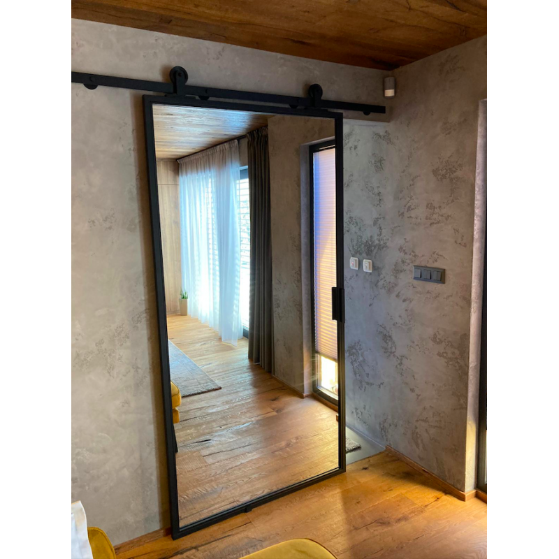 Custom sliding steel door with mirror