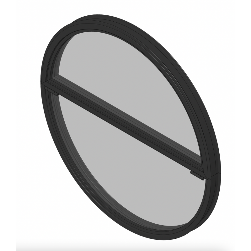 the possibility to assemble fixed and rotating windows on a vertical or horizontal pivot, see drawing