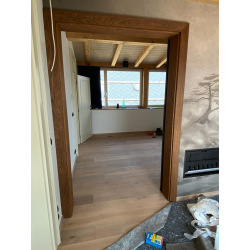 think that the door is moved forward of the building opening. Measure the width and height of the building opening and select the door at least 2cm higher and wider on each side