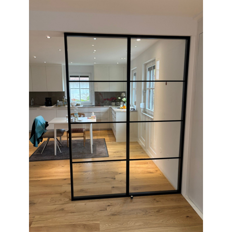 - the filling is 8mm ESG safety tempered glass (only in the steel version is 6.4mm VSG glass) in various designs - Matelux, smoked, bronze