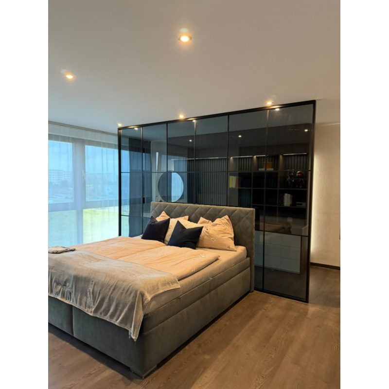 - we use our own subtle aluminum profiles (vertical frames 12mm, horizontal 33mm), door depth 33mm