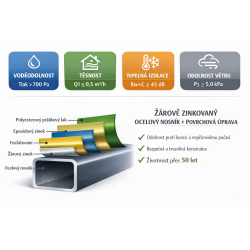 Material: Profiles made of aluminum alloy 6061-T6 (additional charge of 120,000 CZK from hot-dip galvanized steel Q235)